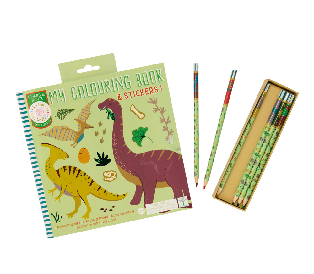 SCRIBBLE SNIFFS MY COLOURING BOOK -DINOSAURחוברת צביעה ובה דינוזאורים, מאובניםועוד מוטיבים שילדים אוהבים, דף מדבקות וכריכה מפיצת ריח עם עיטורים כסופים.הדפים בחוברת עבים והתמונות מופיעות על צד אחד שלהם, כך שהם מתאימים במיוחד לצביעה.תנו לילדים זמן יצירה מושלם לביטוי אישי, ולריכוז ושלוה. צובעים את התמונות בצבעים שבוחרים, מתאימים אותם לתמונה, לצבעים האחרים, למצב הרוח ולטעם האישי, ומוסיפים להן מדבקות להעשרת התמונות שיצרנו.והנה עוד כיף: מגרדים את הכריכה ומריחים ריח שוקולד.את החוברת גם נח לקחתלנסיעות, לזמן המתנה, למסעדותולביקור אצל סבא וסבתא. מתאימה במיוחד עם העפרונות הצבעוניים בקופסה, שנמכרים בנפרד.הצוות של פלוס אנד רוק פועל בעיירת הקיט האנגלית בלאקפול. בין רכבות הרים, רצועות חוף, שערות סבתא (floss) וסוכריות מקל (sticks of rock), הם יוצרים עיצוב עילי לילדים. המוצרים היפייפים שלהם מבטאים את הכישרון וההנאה שבהם הם יוצרים.