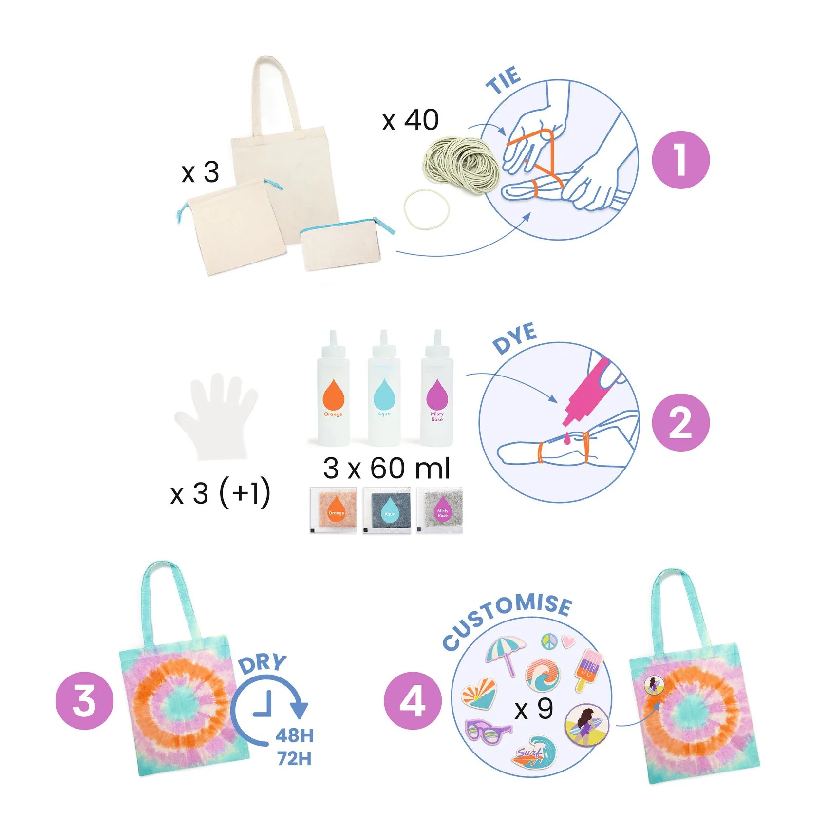 ערכה משגעת ללימוד טכניקת הטאי-דיי.מכילה כל מה שצריך ובליווי חוברת הדרכה צבעונית וברורה תוכלו ליצור 3 מוצרים מטריפים.