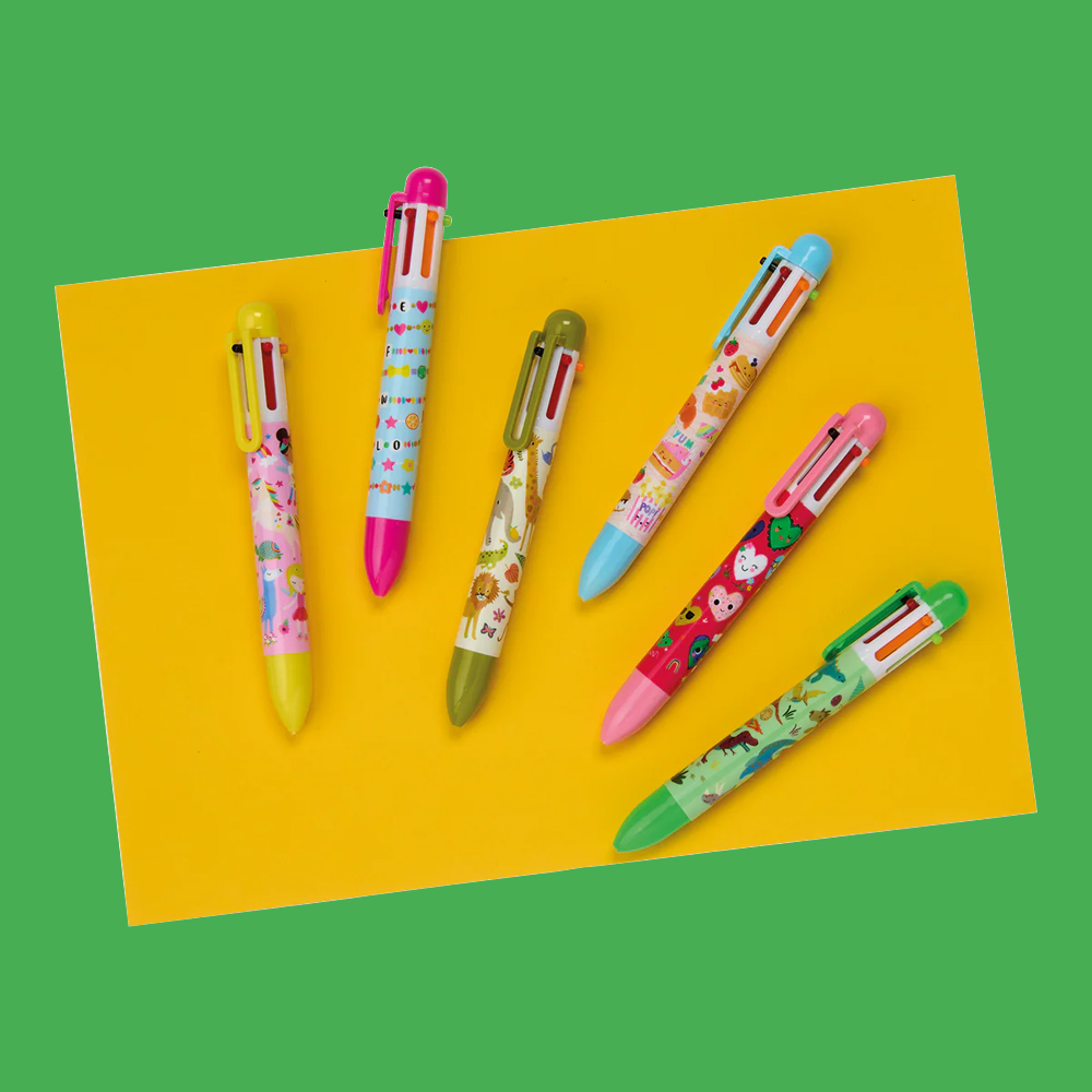 ארבעה עטים נוצצים בצבעים שונים.