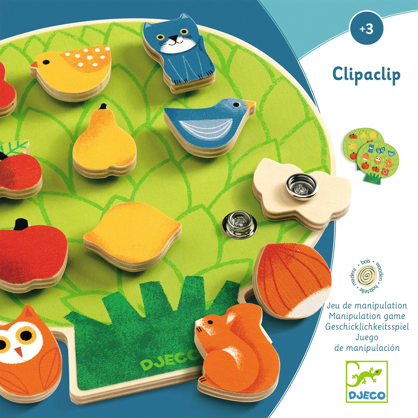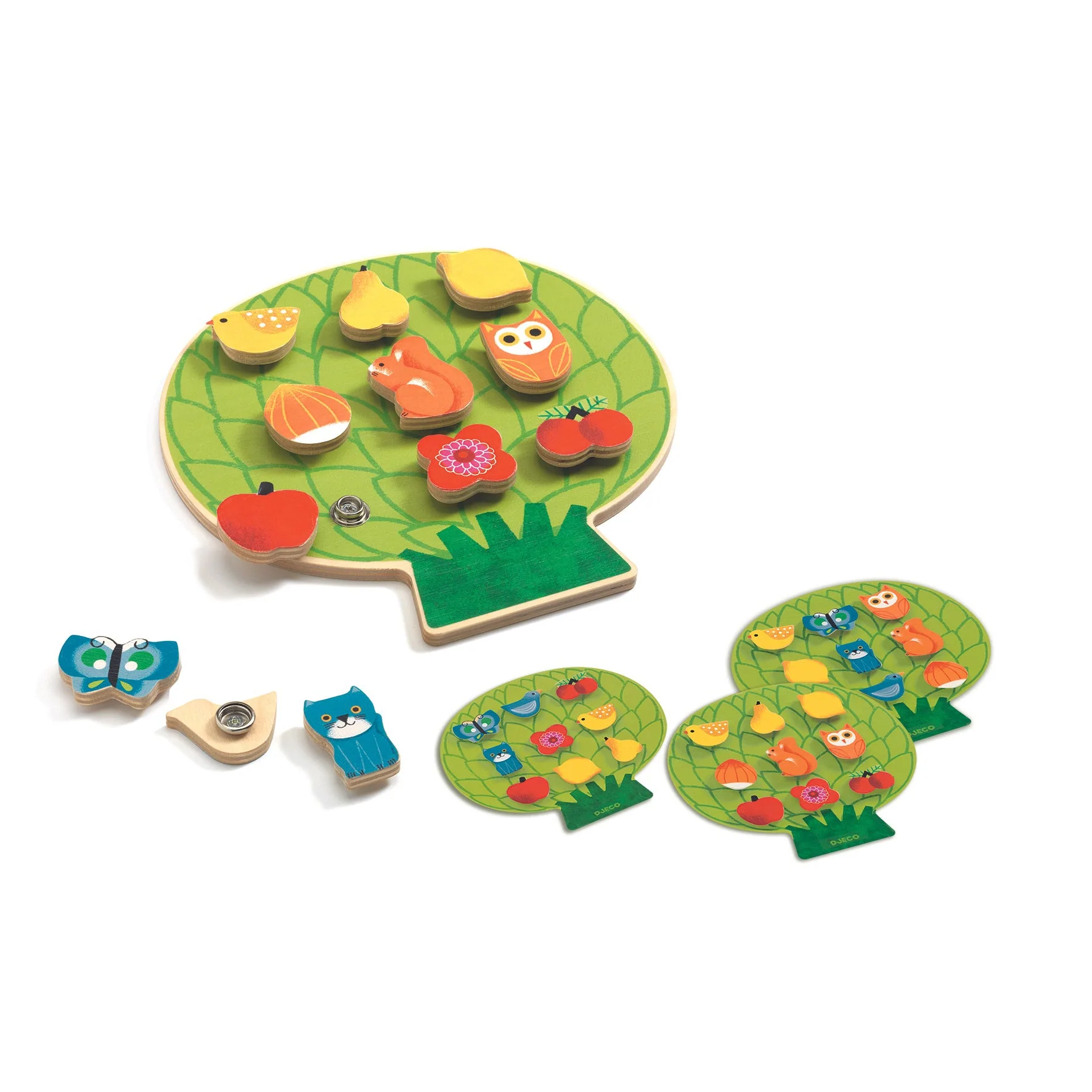 משחק התאמות, לסדר את החיות לפי צבעים או לפי דמויות. החיבור הוא עם תיק תק מיוחד.מלמד את הילדים לזהות צורות וצבעים ומשפר את יכולת האבחנה והמוטוריקה.מכיל 8 כרטיסים דו צדדיים שלפיהם מרכיבים את החלקים, 12 חלקים להרכבה ולוח עץ בדמות עץ.