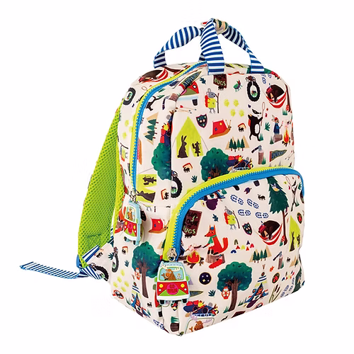 תיק גן עם רצועות גב מרופדות, תא גדול מרווח, תא קטן, רוכסנים מיוחדים שמשלבים שני צבעים ומעוטרים בקישוטי מוס ברכב טיולים, תא צידי מרשת לבקבוק וידיות לנשיאת התיק ביד לתליה שלו. בתוך התיק בטנה פנימית מעוצבת ותוית “I Belong To….”.